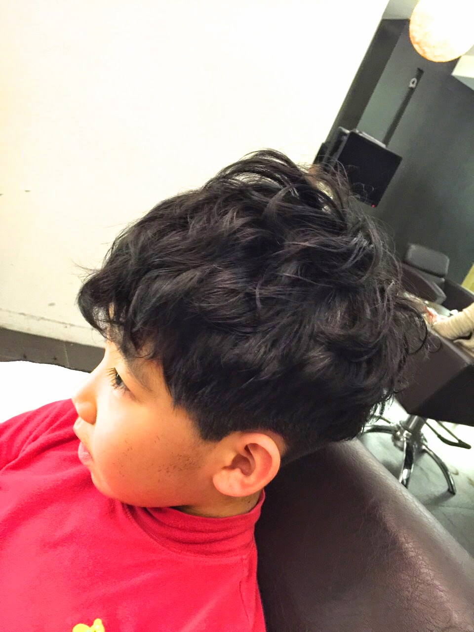 這一次小隆幫這一位小帥哥燙個隨性風格的捲髮,小朋友稚嫩的臉龐,搭上捲髮
