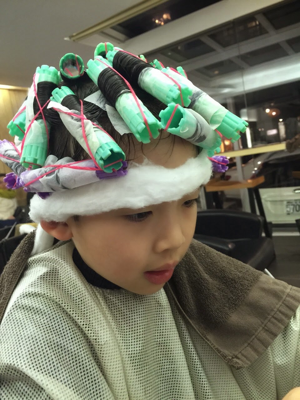 小隆這一次幫這位小弟弟燙髮。過程真的很好玩。小朋友帶有稚嫩的小臉搭配微卷燙髮