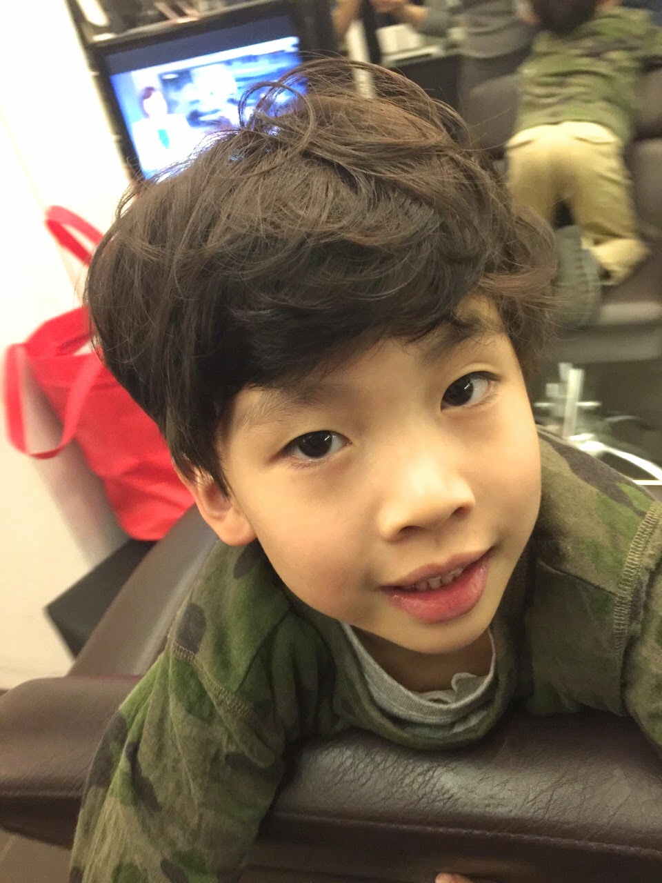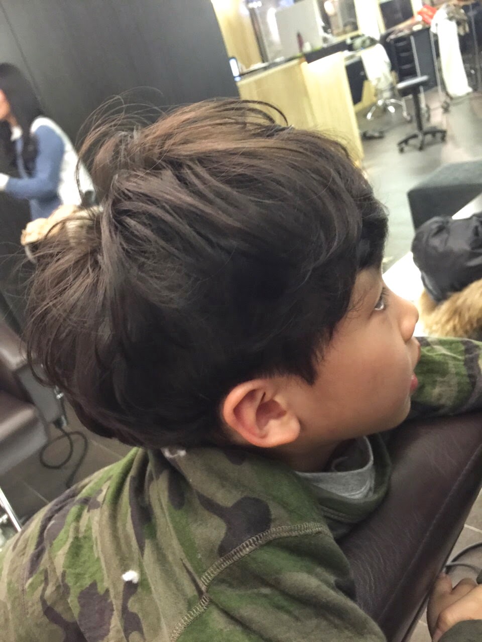 燙完嘍~小朋友也快坐不住了~剪裁上因為搭配捲髮,本身頭髮又細軟,剪髮上注重外圍輪廓上的剪髮方式,讓髮型有包伯風格,再搭配燙髮厚重感就很強烈........髮型設計小隆