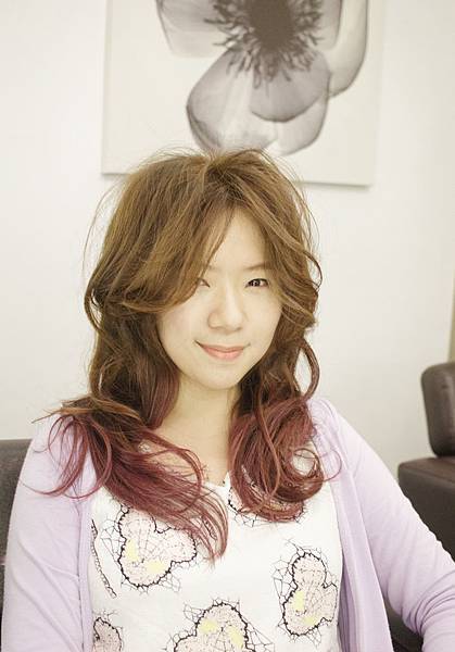 淡淡的粉紫色系片染襯托了女孩的甜美..