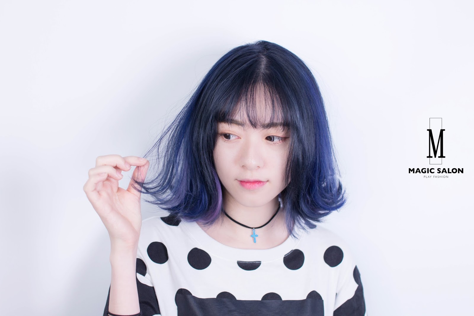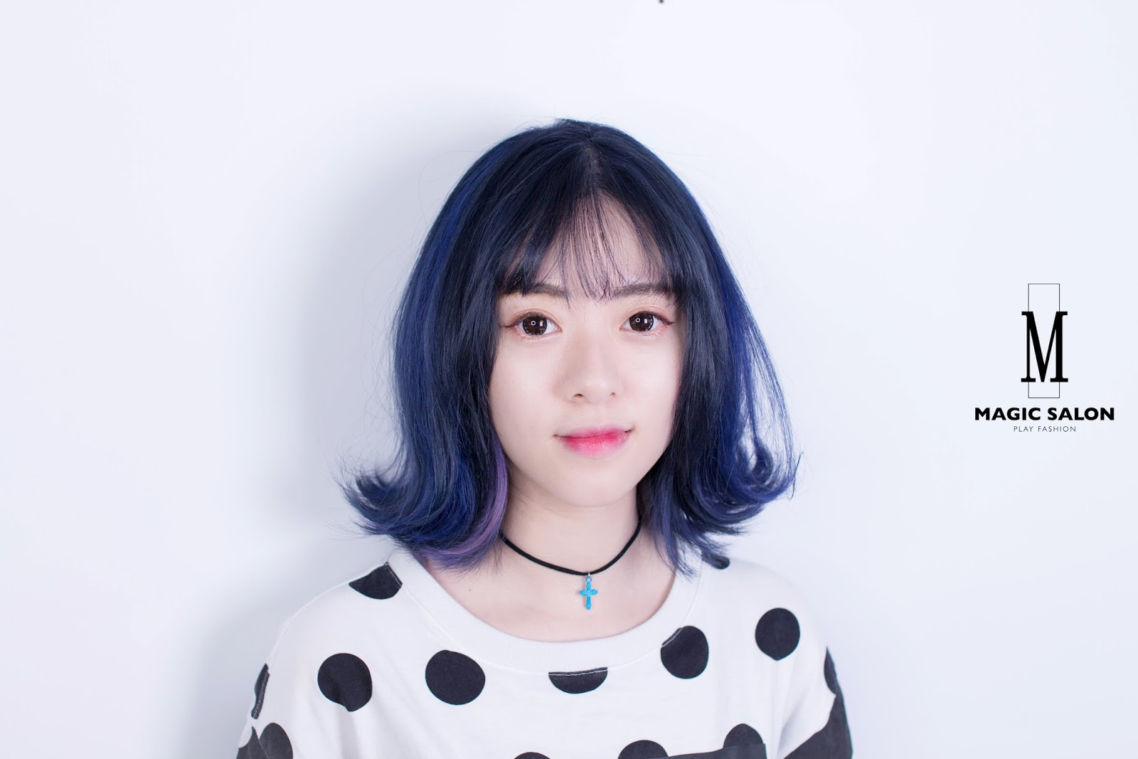 染髮上面為了要改變娃娃臉的甜美感.所以在顏色上面就選擇帶有酷酷味道的『深灰藍』+『淺粉藍』的漸層染髮