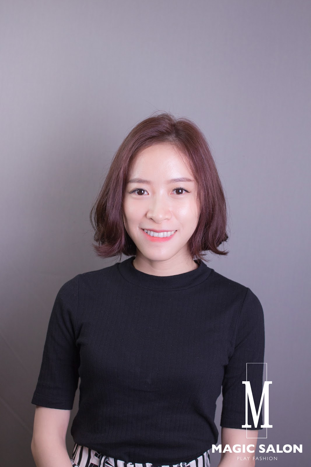 菸熏粉紅色的髪色再加上及肩俏皮的短髮